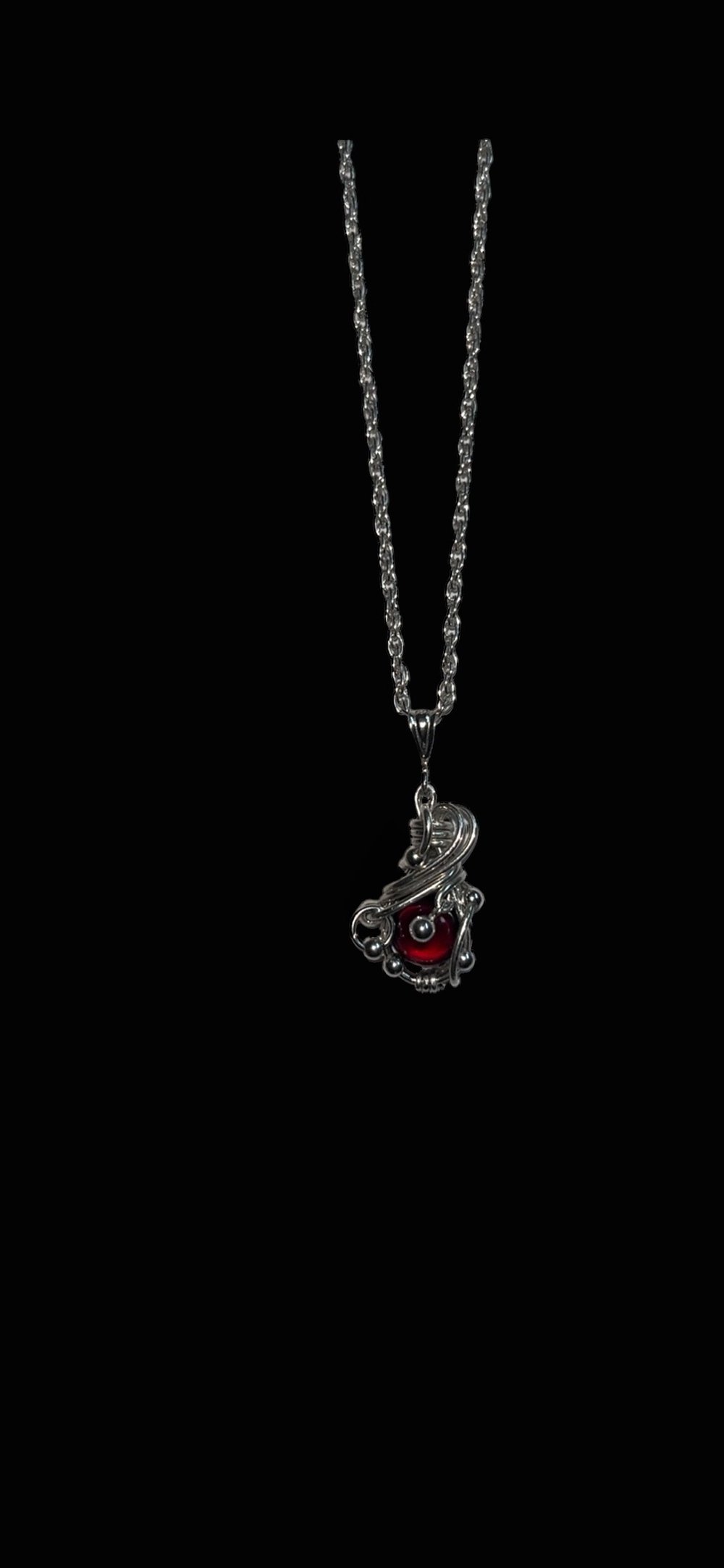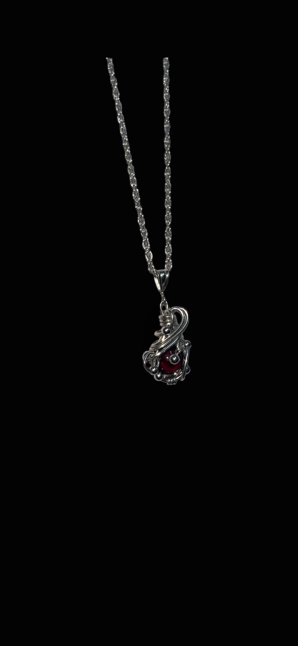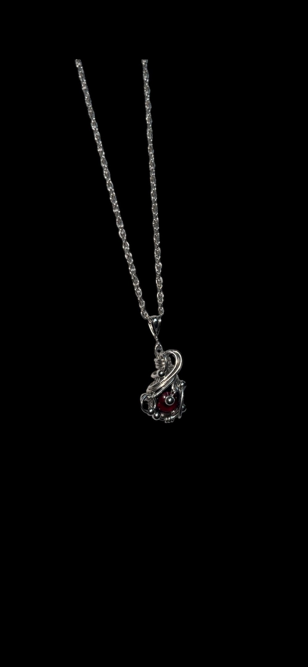 Mini Garnet set in .925 sterling silver, adorned with silver beads throughout, and finished with a sterling silver pierced ring on the piece.