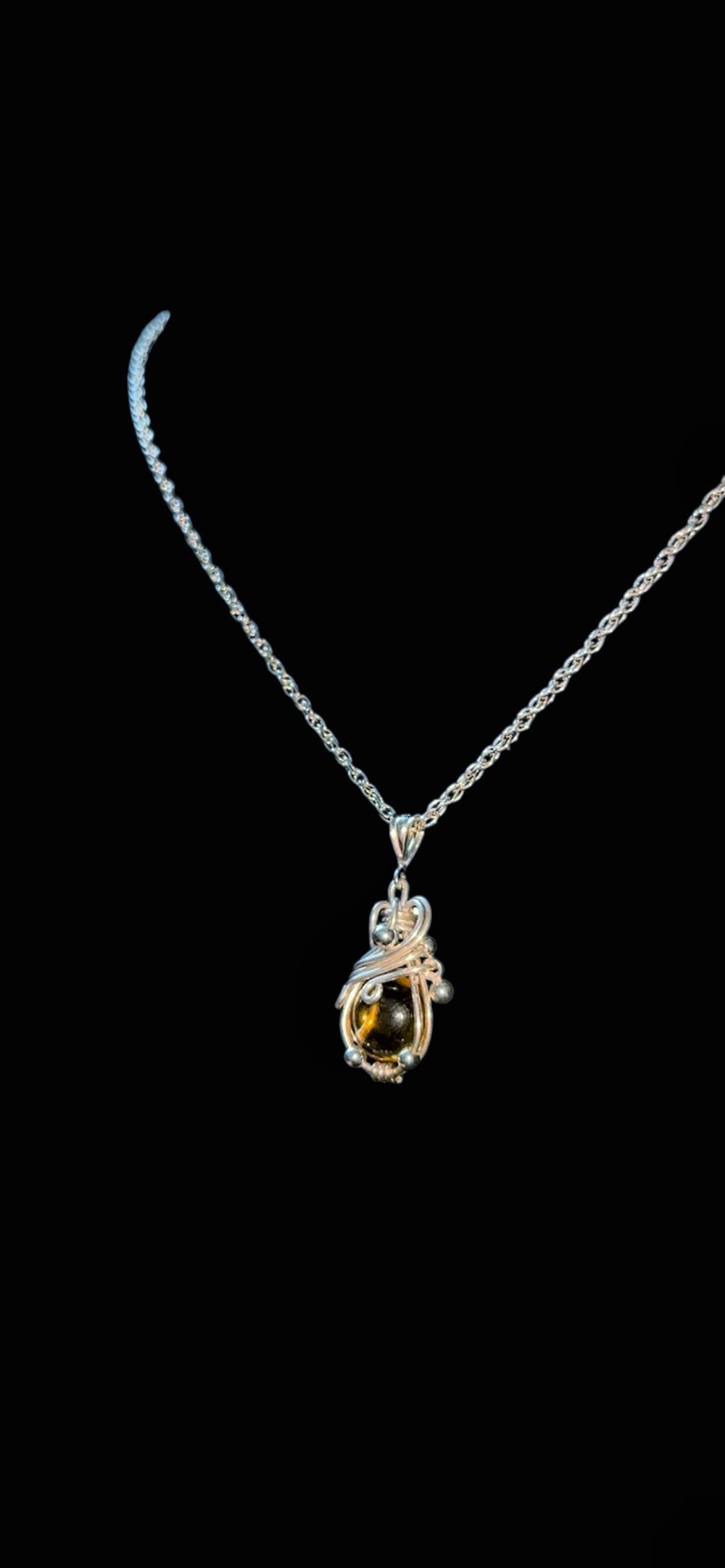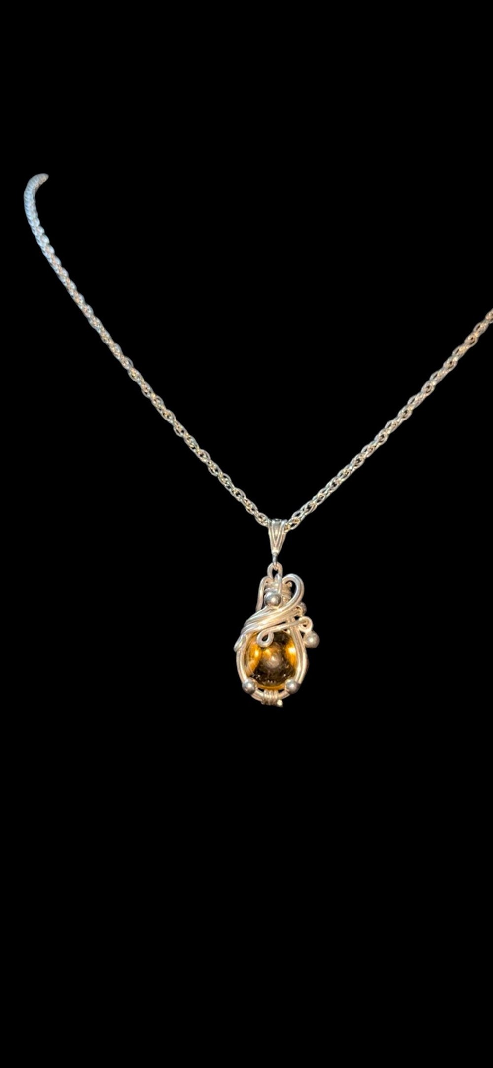 Citrine wrapped in .925 sterling silver swirls, adorned with sterling silver beads throughout the piece. May this necklace bring you luck and all you wish for with every wear ♡ ⋆