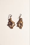 The first song ⟣ Asymmetrical Cowrie shell earrings intricately wrapped in 14k gold fill, heavily embellished with 14k gold filled orbs and pierced rings throughout the earrings. Created with the image of the sea moving through each turn and swirl of these earrings, finished with a bubbly beaded finish with the image of the seafoam kiss the ocean leaves behind as the tide recedes back into the water once again. Handmade with love in NYC, 1/1. ♡